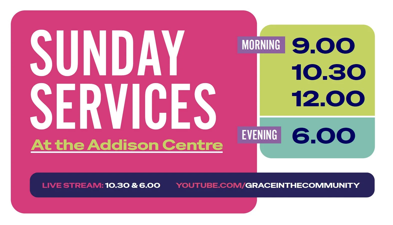 NEW SERVICE TIMES - 9am, 10:30am, 12pm (repeats) and 6pm